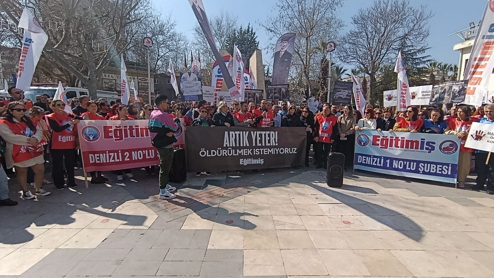 Eğitim ve Bilim İşgörenleri Sendikası (Eğitim-İş) Denizli Şubesi, İstanbul’un Çekmeköy ilçesinde hayatını kaybeden öğretmen için basın açıklaması ve protesto yürüyüşü gerçekleştirdi. Eğitim çalışanlarına yönelik artan şiddet olaylarına dikkat çeken sendika üyeleri, yetkilileri gerekli önlemleri almaya çağırdı.