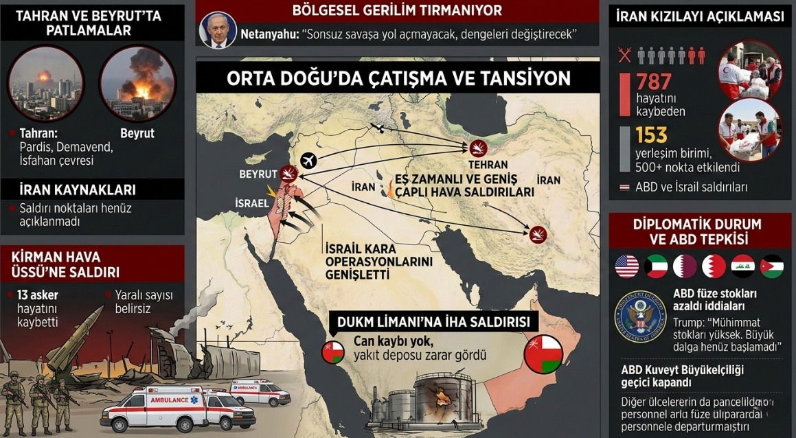 İran Kızılayı, ABD ve İsrail tarafından düzenlenen saldırılar sonucunda ülkede hayatını kaybedenlerin sayısının 787’ye yükseldiğini açıkladı. Açıklamada, saldırıların 153 yerleşim biriminde 500’ün üzerinde noktayı etkilediği belirtildi.