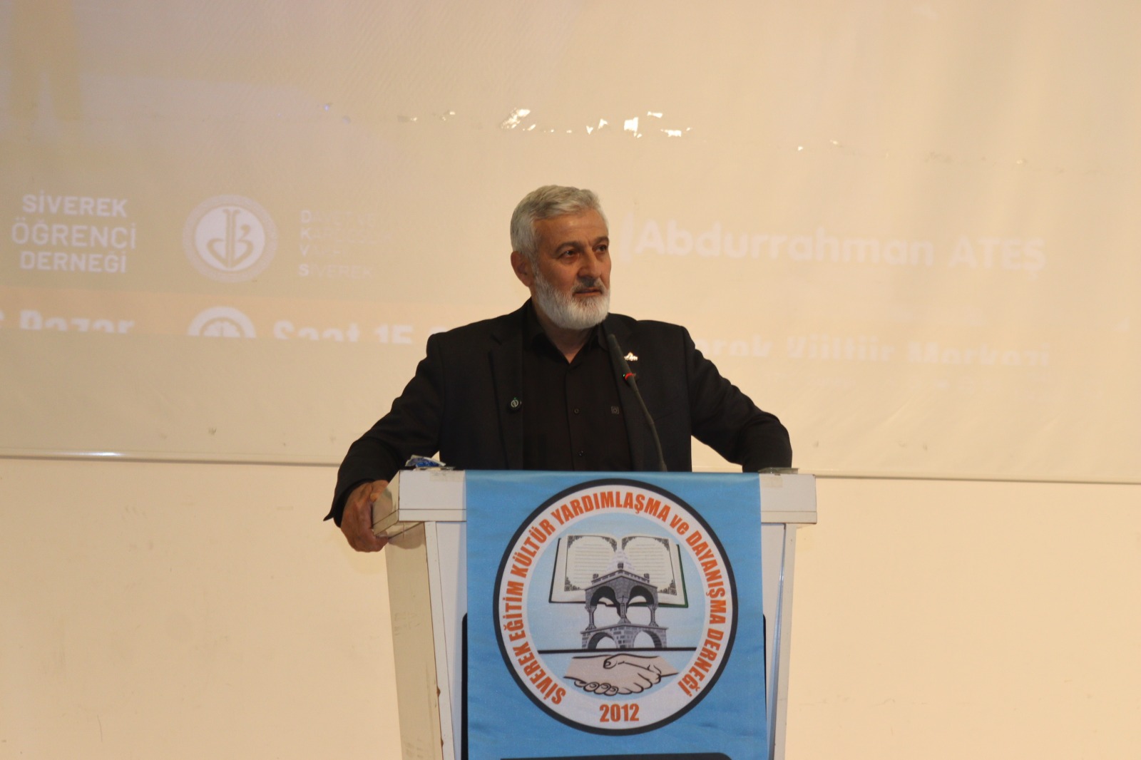 Siverek’te “Kur’an’da Aile Tasavvuru” konulu konferans, yer yüzme havuzunun yanındaki kültür merkezinde saat 15.00’te gerçekleştirildi. Programa vatandaşlar, öğrenciler ve aileler yoğun ilgi gösterdi. Organizasyon, Siverek-Der, Siverek Öğrenci Derneği ve Davet ve Kardeşlik Vakfı Siverek iş birliğiyle düzenlendi.