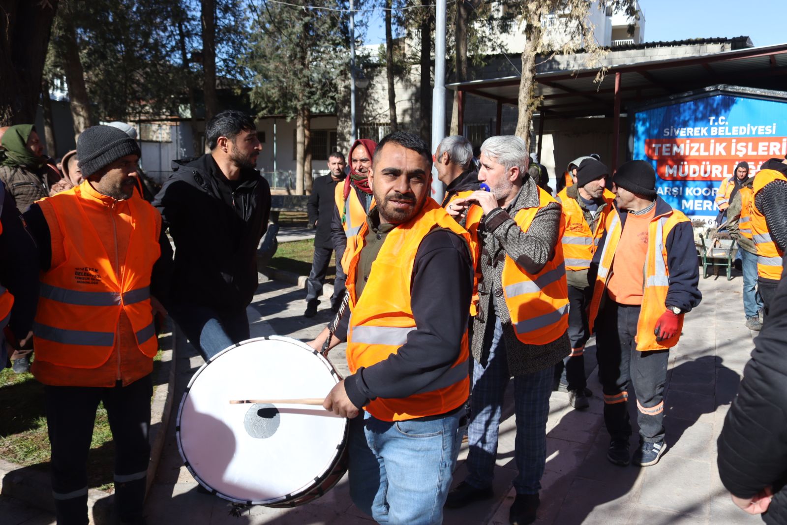 Siverek Belediyesi Temizlik İşleri Müdürlüğü personeli, kar yağışı sürecinde yürütülen çalışmalar ile sözleşme yenilemeleri kapsamında sağlanan mali iyileştirmeler nedeniyle Belediye Başkanı Ali Murat Bucak’a teşekkür etmek amacıyla Ağaçhan Parkı’nda bir araya geldi.